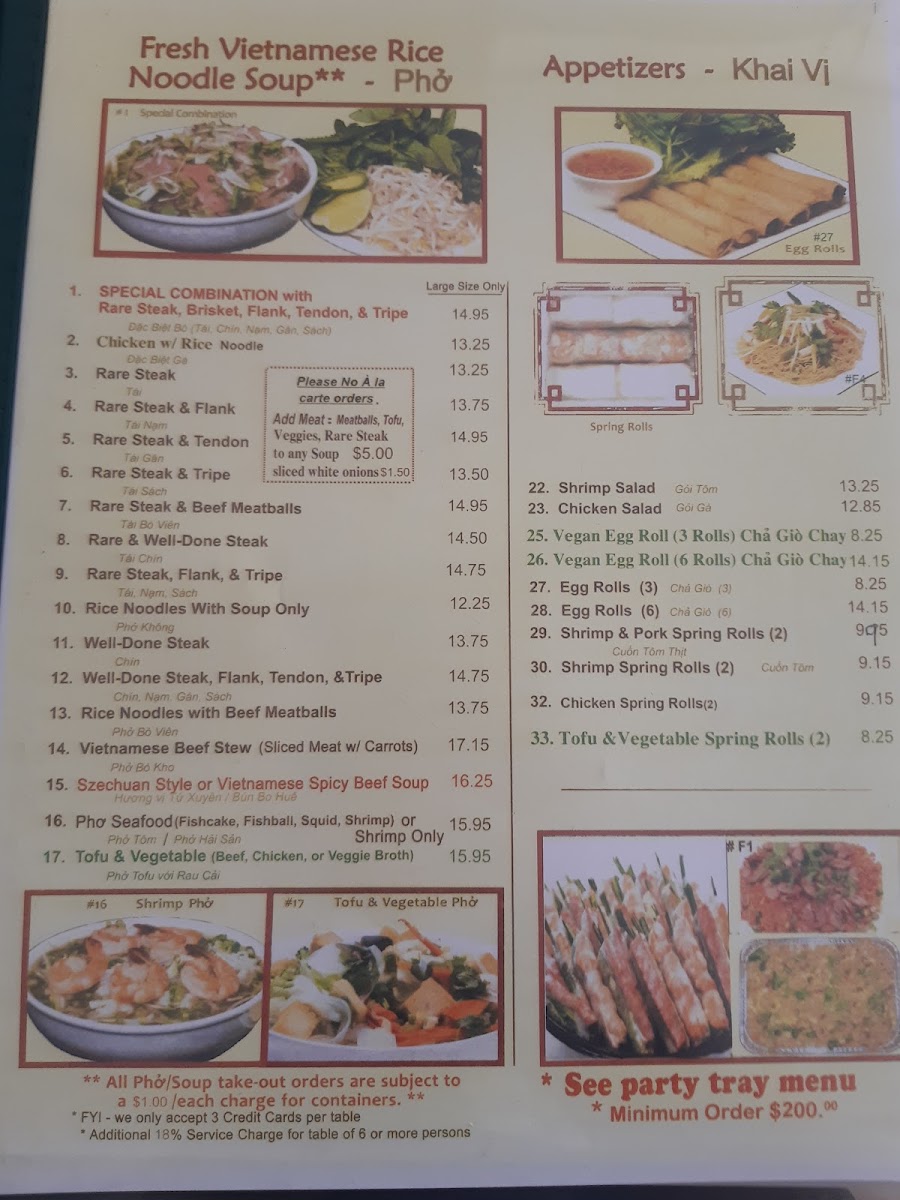 A true vegan version of pho! Tofu and assorted vegetables including broccoli, squash, celery, carrots, and cabbage with rice noodles in your choice of beef, chicken, or vegetarian broth.